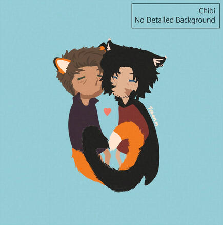 Chibi : $30With added detailed* background : +$10TWO (2) or more chibi's in request : +$10 per additional chibi.Small, cutesy versions of characters.